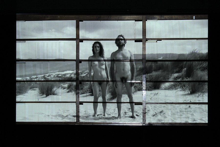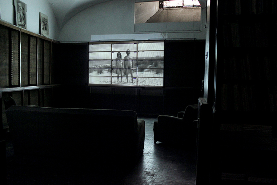 Installation at livraria Sá da Costa bookstore as part of the group exhibition ILHA, inspired by Aldous Huxley’s book. The video was projected on an bookcase with all the books turned as to show only the white paper.